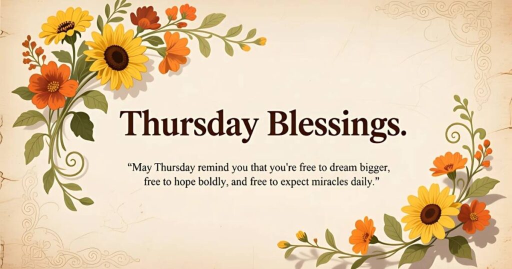 - Let Thursday’s blessings wash over you like morning rain, refreshing your spirit and renewing your determination to keep pushing forward.