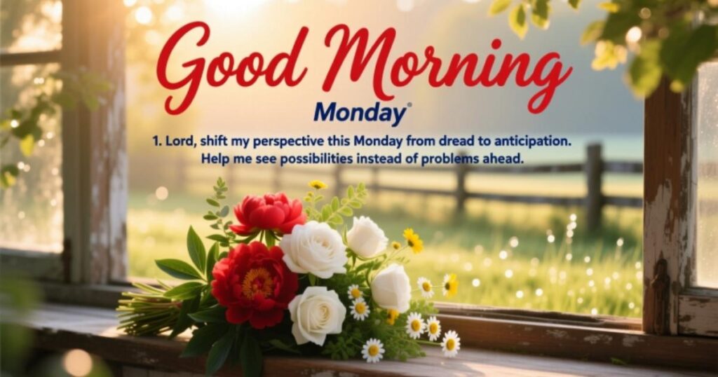 1. Lord, shift my perspective this Monday from dread to anticipation. Help me see possibilities instead of problems ahead.