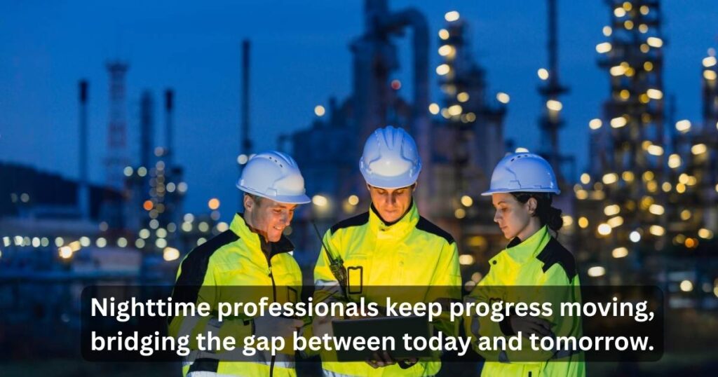 - Night workers transform stillness into productivity, shaping tomorrow before sunrise even appears.