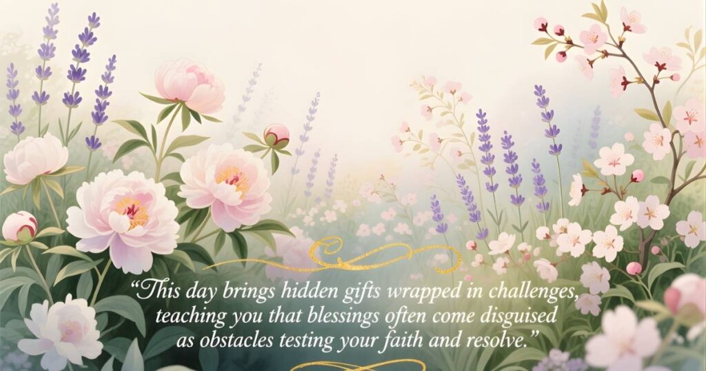 - This day brings hidden gifts wrapped in challenges, teaching you that blessings often come disguised as obstacles testing your faith and resolve.